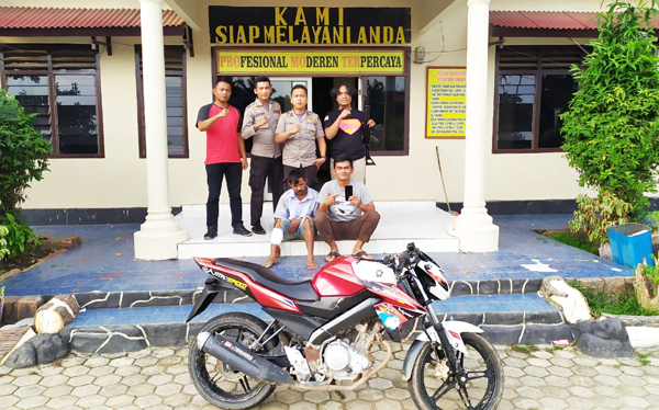 Pelaku SPO alias BG kelahiran Peringsewu beserta barang bukti 1 unit Handphone merk Oppo A3s yang dibeli hasil dari uang yang dicuri, serta 1 unit Sepeda Motor Yamaha Vixion warna merah yang digunakan pelaku saat beraksi telah diamankan di Mapolsek untuk diproses lebih lanjut. (sup)