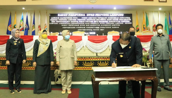 Gubernur Lampung menyampaikan bahwa Sidang Paripurna Pembicaraan Tingkat II ini merupakan rangkaian dalam proses penyusunan dan penetapan Rancangan Peraturan Daerah menjadi Peraturan Daerah tentang APBD Tahun Anggaran 2021.