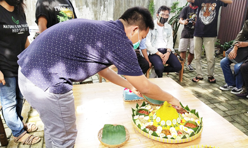 Menandai dibukanya perhelatan mandiri ini, dilakukan pemotongan tumpeng di lokasi pameran yang diikuti para peserta dan seniman yang berpartisipasi.