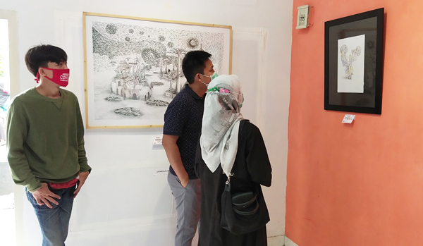 “Pertama kami menekankan ditengah pandemi ini kegiatan harus disiplin dengan protokol kesehatan. Maka kami sediakan tempat cuci tangan di depan galery, bahkan kami disumbang masker untuk dibagikan kepada peserta dan pengunjung, dan untuk memasuki ruangan dibatasi dengan jumlah 10 orang setiap sesi, agar tidak berkerumun di dalam, masih bisa jaga jarak saat menikmati karya seni,” ujarnya.